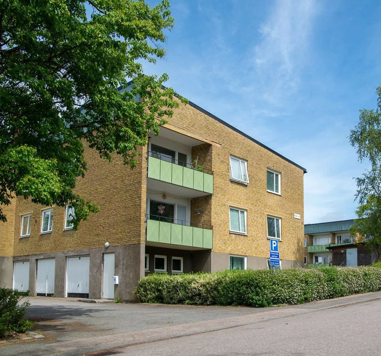 Förråd finns i lägenhetshusets källare och där finner du även tvättstuga.