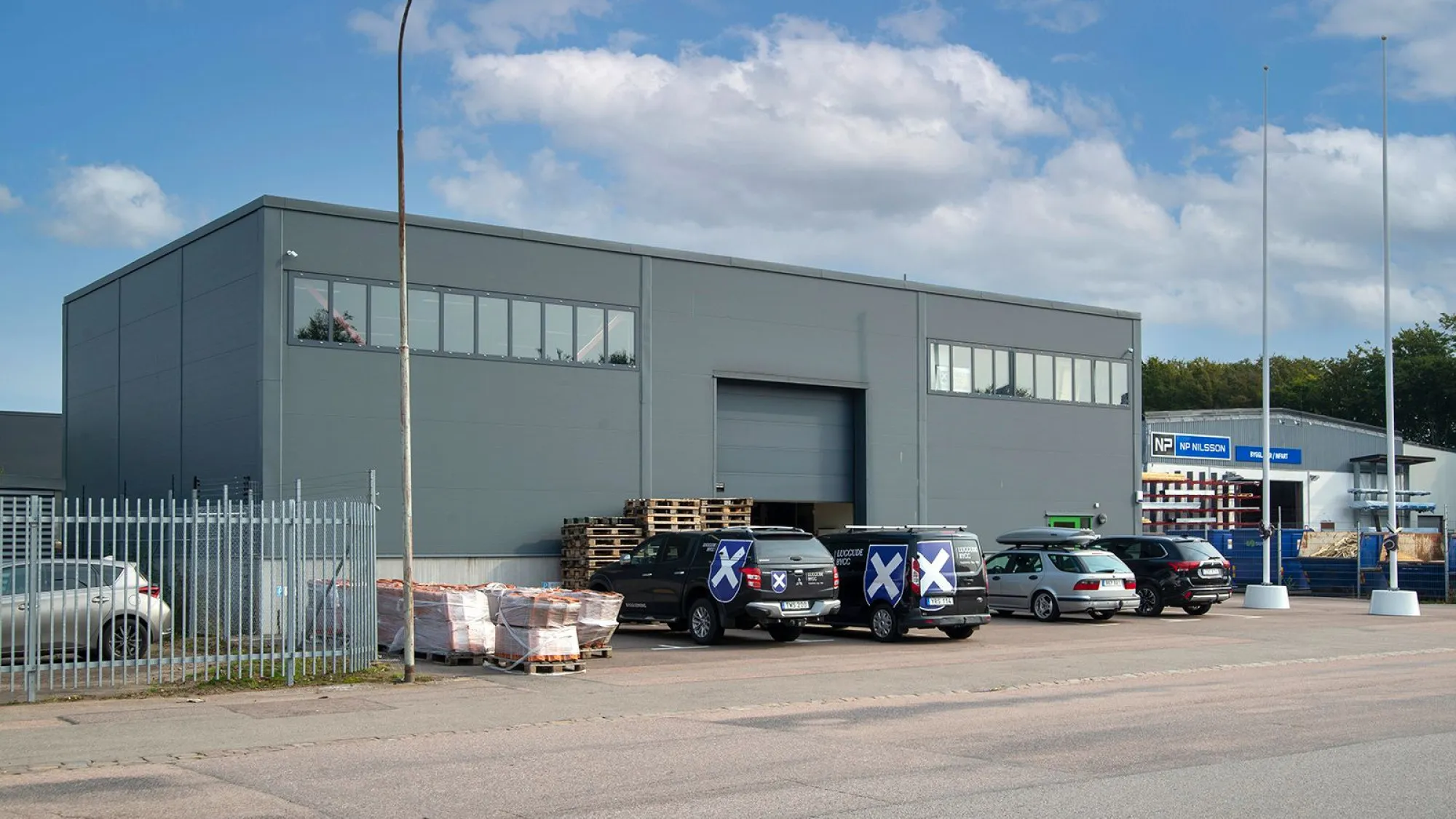 Modern fastighet från 2017 på Berga industriområde i norra Helsingborg, uthyrd till maskinuthyrningsföretag.