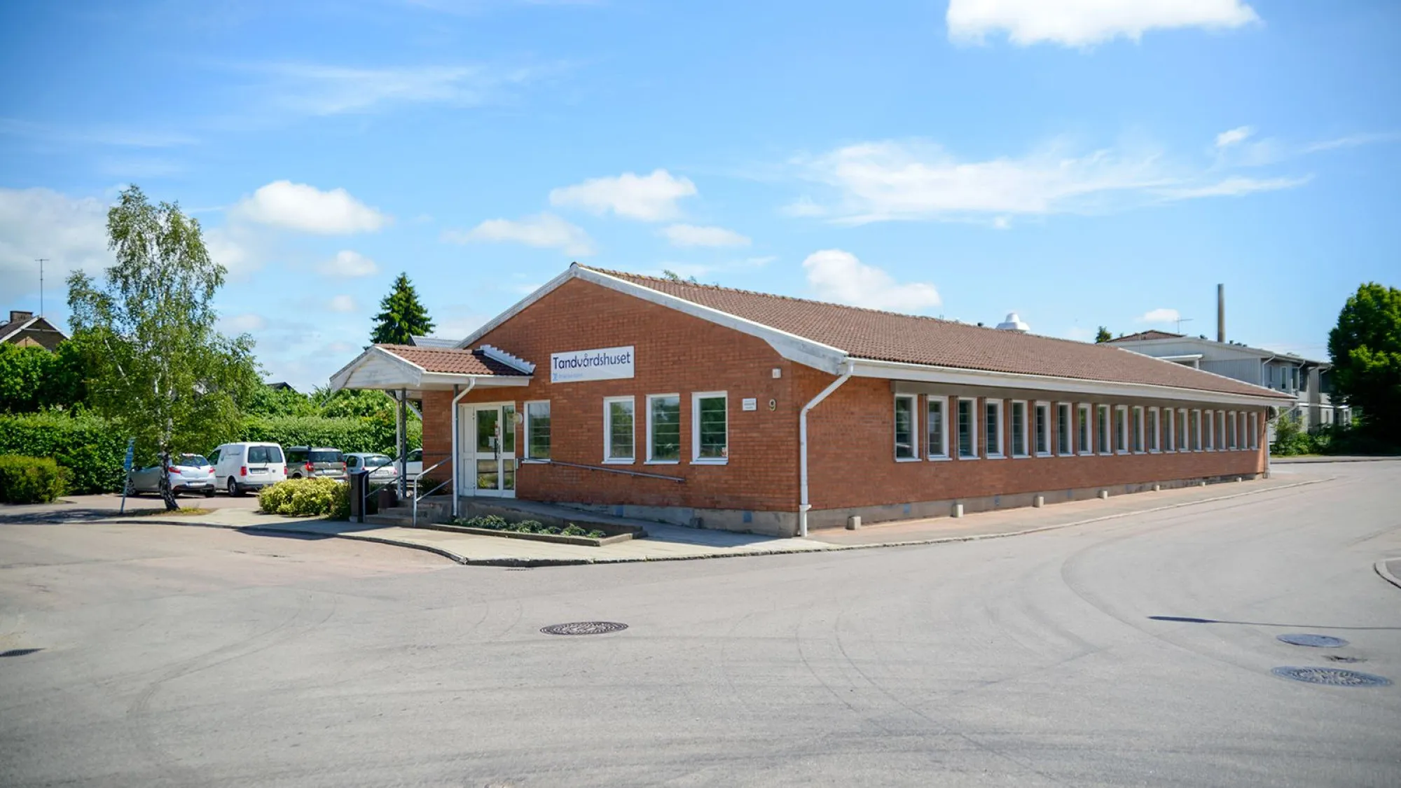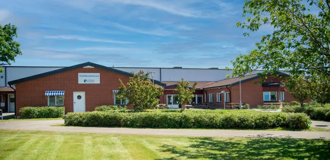 Centralt belägen vårdcentral i Åstorp med renoverad byggnad, grönytor och nära stationen.