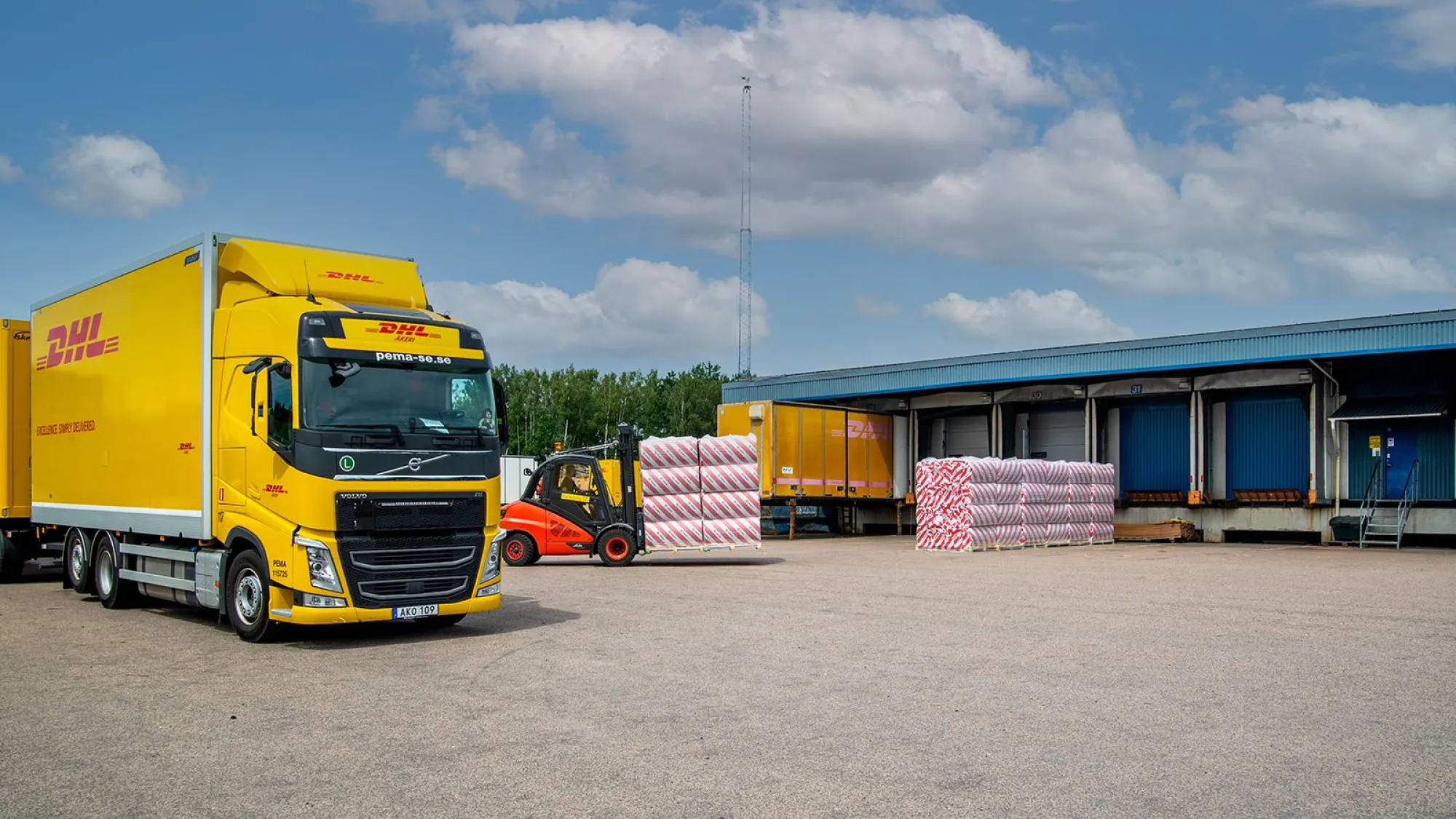 Logistikfastighet i Läreda industriområde, Hässleholm, med kontor och logistikhall samt stora uppställningsytor.