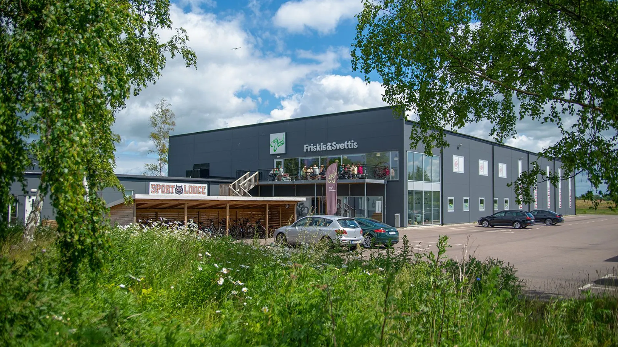 Modern sportanläggning vid södra infarten till Höganäs med gym, gruppträning, restaurang, fysioklinik och Sportlodge.